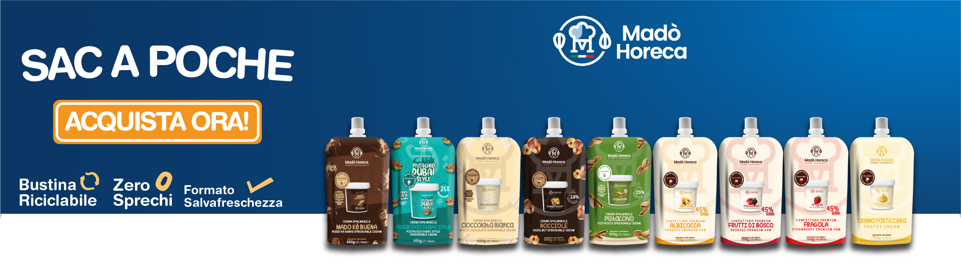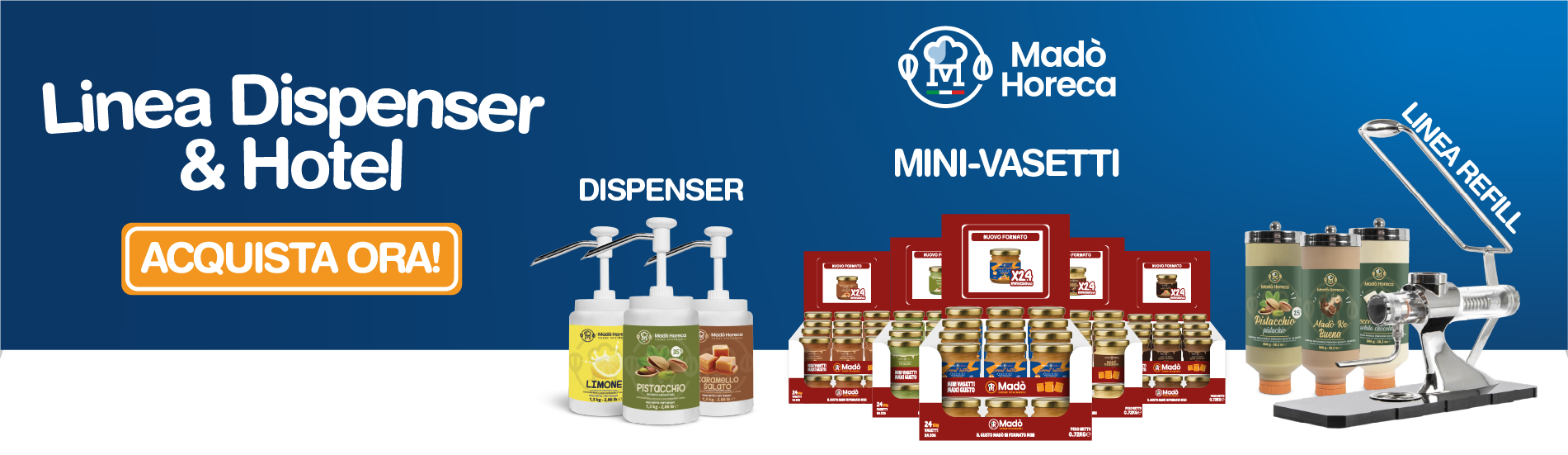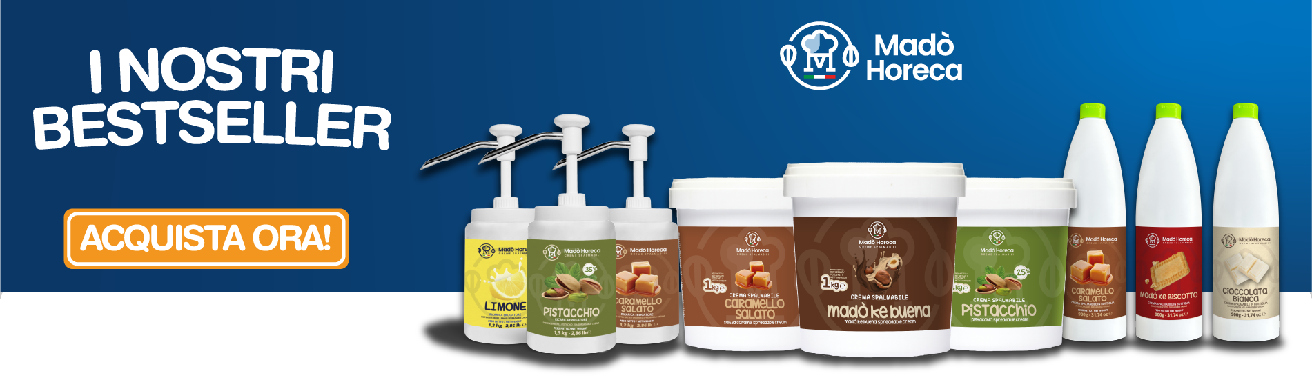 Con Madò Horeca, puoi personalizzare le nostre deliziose creme con il tuo marchio.