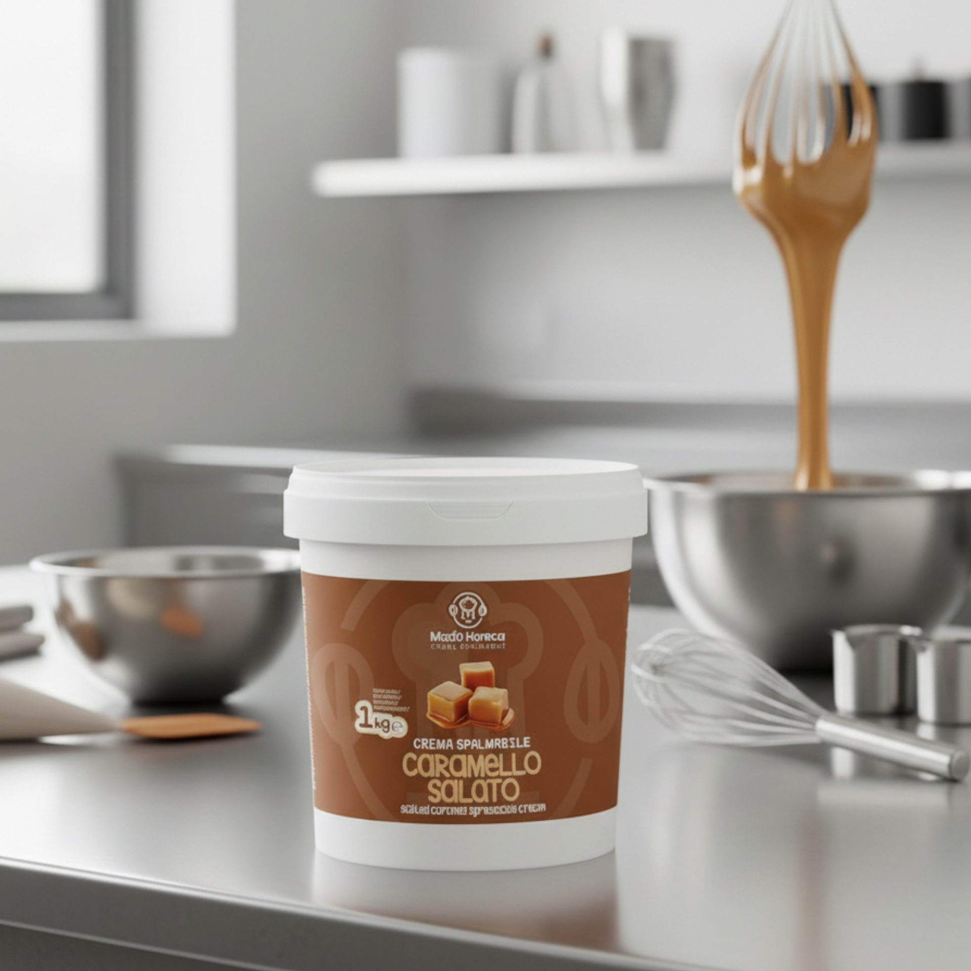 La nostra crema è un prodotto irrinunciabile per gli amanti del caramello salato: pronta all’uso e spalmabile, offre qualità artigianale e un gusto unico e irresistibile.